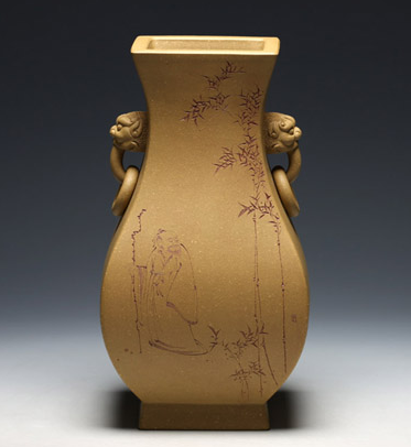 【明理茶艺】 宜兴紫砂壶 王翔(祥)(瑞兽双耳花瓶 )名师手工打造 限量品