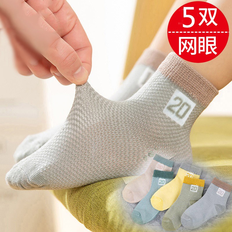 丹吉娅【5双装】儿童袜子夏季薄袜男童女童舒适透气网眼宝宝袜中筒袜 混色随机5双装 3-6岁…
