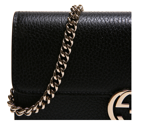 GUCCI 古驰 女士黑色荔枝纹双G扣风琴链条单肩斜挎包 510314 CAO0G 1000