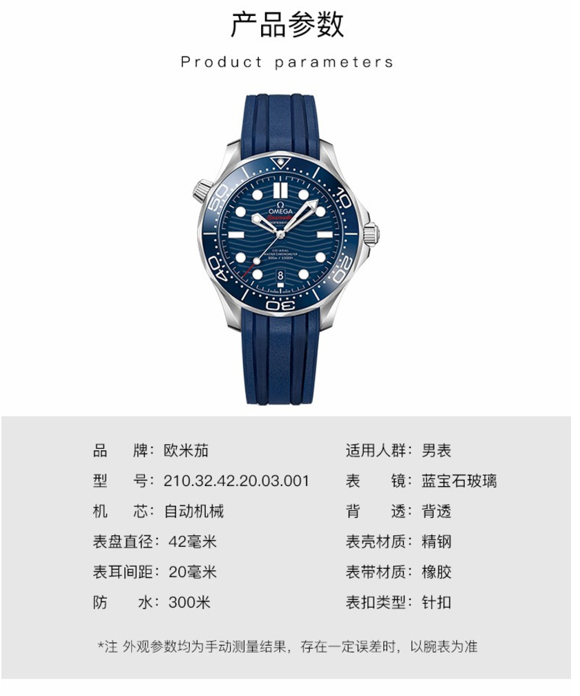 【OMEGA】欧米茄天文台男表210.30.42.20.06.001新款海马300机械表
